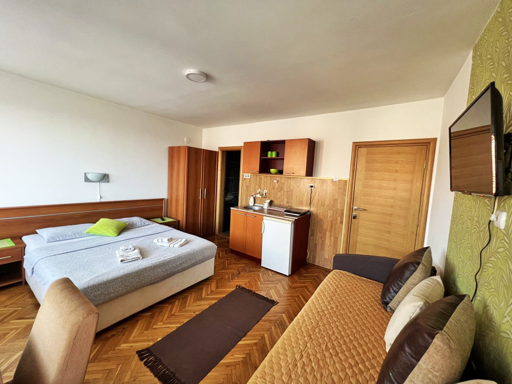 Studio Oranž se nalazi na drugom spratu porodične kuće Nikodijević veličine je oko 30m2. Studio se nalazi na stotinak metara od centra Sokobanje. CENTRALNO GREJANJE!